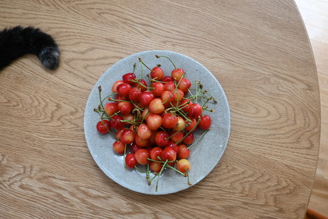 お気に入りのプレートに 2023年07月06日 今年も庭のサクランボが豊作でした。しっぽが写り込んでる^ ^プレートのサイズは約24cm。貫入のお皿が気になる今日この頃... いろいろ。◯素敵なキッチンは◯キッチン雑貨ステキ雑貨、買いました♪収納・片付けもっと心地いい暮らしがしたい! お買い物マラソ ... 続きを読む