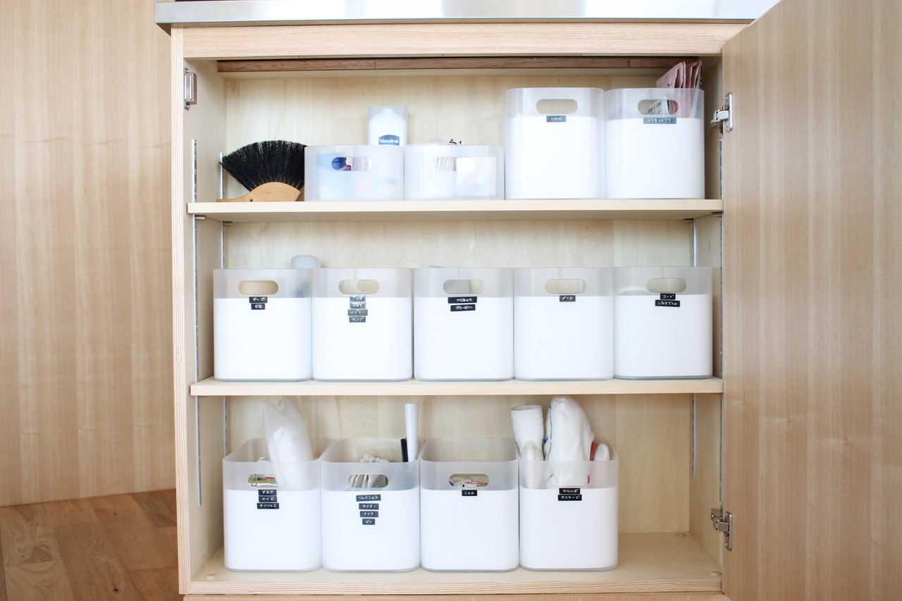 それぞれのボックスにはリビングで使う物を