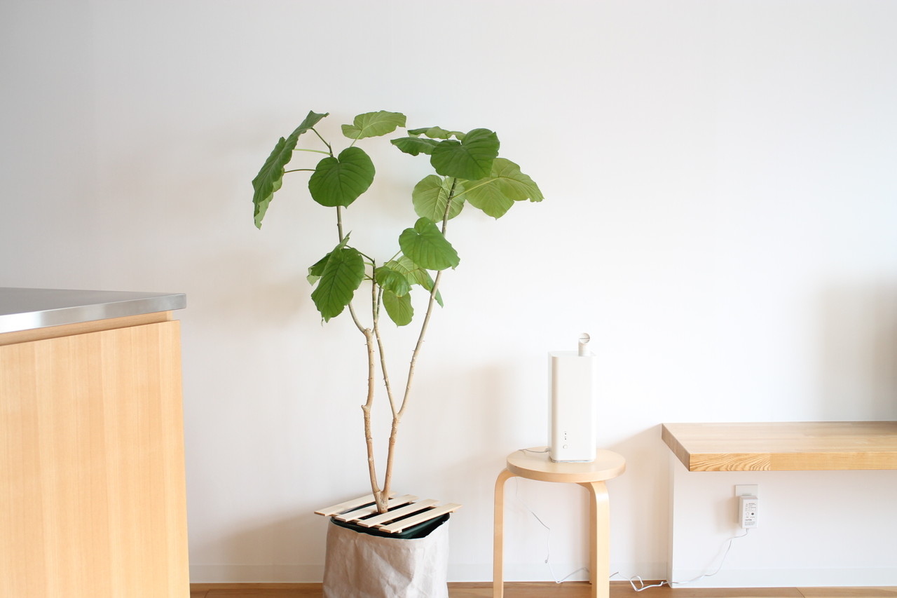 テレビボード横のウンベラータさん。