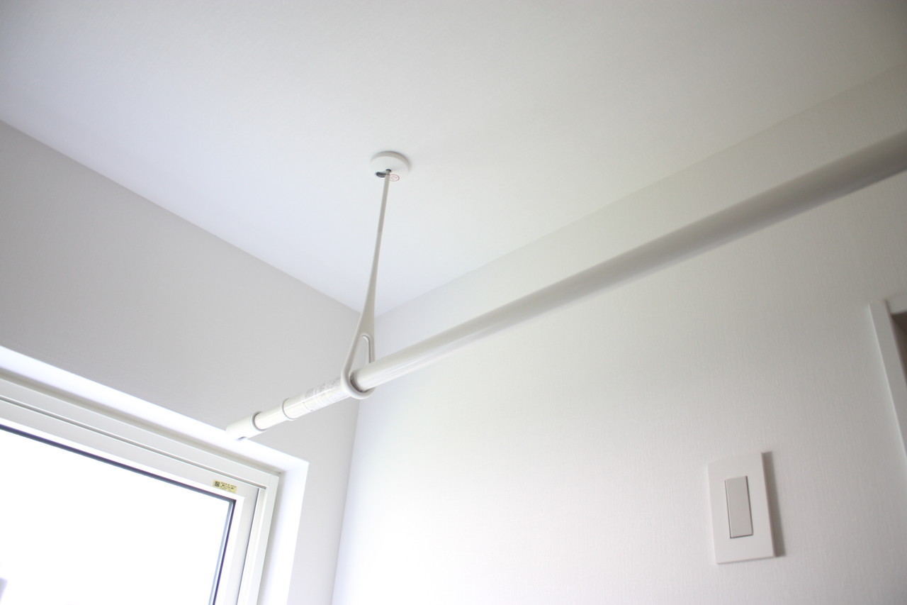 洗濯機の上には室内用物干し。